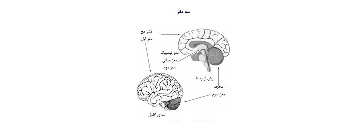 ۳ مغز: قشر مخ، مغز لیمبیک، مخچه