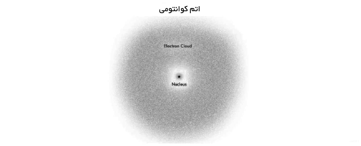 لذا در نتیجهی این آزمایشات خاص، حوزهی جدیدی از علم متولد شد، حوزهای به نام فیزیک کوانتوم. قبل از اینکه فیزیک کوانتوم وارد میدان شود، مردم فکر میکردند اتم از یک هستهی نسبتاً سفت و سخت و اجزای کوچکتر و بیاهمیتتری در داخل یا اطرافش تشکیل شده است. به نظر میرسید اتم از مادهی سخت تشکیل شده است، مگر نه؟ حتماً تصویر زیر از اتم را در کتابهای درسی خود دیدهاید: