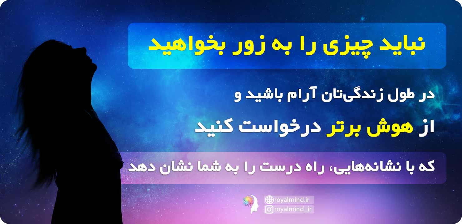 به این نکته توجه داشته باشید که نباید چیزی را به زور بخواهید و سعی نکنید همان مسیری که دوست دارید و فکر میکنید درستتر است برای شما اتفاق بیفتد. گاهی اوقات هوش برتر مسیرهای بسیار بهتری را برای شما در نظر گرفته است. بهتر است در طول زندگیتان آرام باشید و از هوش برتر بخواهید با نشانههایی راه درست را به شما نشان دهد. بنابراین زمانی که صحبت از ساختن زندگی میشود، یک بخش مربوط به خواستههای خودمان و بخش دیگر مربوط به چیزی است که روحمان میخواهد آن را تجربه کند.