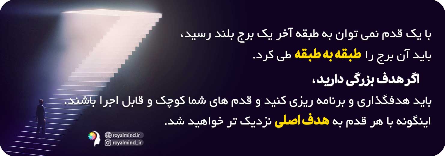 هدفگذاری بسیار مهم است. باید اهدافی واقعبینانه برای خود انتخاب کنید. لازم است اهدافی بلند مدت برای خود تعیین کنید و سپس هر یک از این اهداف را به اهداف کوچکتری تبدیل کنید تا بتوانید گام به گام و با تکمیل اهداف کوچک به اهداف بزرگ و نهاییتان دست پیدا کنید. وقتی به اهداف کوچکتان دست پیدا میکنید و هر یک از آنها را در لیست کارهایتان تیک میزنید، خوشحال میشوید، اعتماد به نفس زیادی میگیرید و نگرشتان نسبت به زندگی و اهدافتان مثبت میشود.