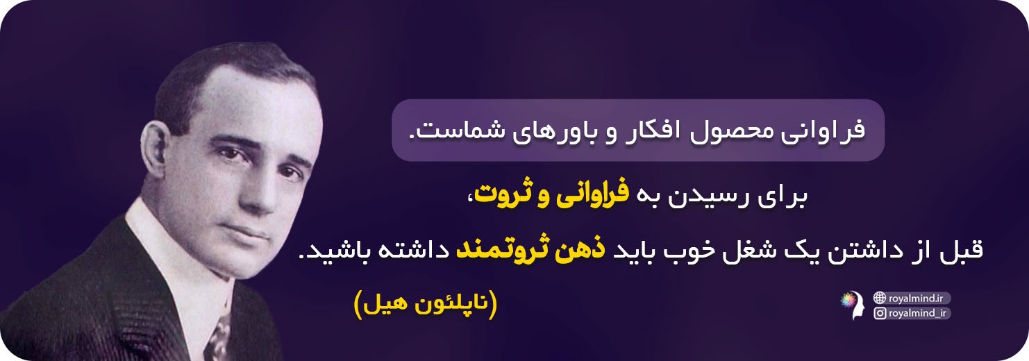 پیشنهاد ما برای شما: برای دستیابی به ثروت، بهبود وضعیت مالی و ایجاد ذهنیت رفاه و فراوانی پیشنهاد ما به شما دورهی فوقالعاده "میراث باب پراکتور" (کلیک کنید)، میباشد. این دوره برای تمام کسانی است که کتاب بیندیشید و ثروتمند شوید را مطالعه کردهاند، اما هنوز نتوانسته اند کدی را که در صفحات این کتاب در میان جملات پنهان شده است، پیدا کنند.