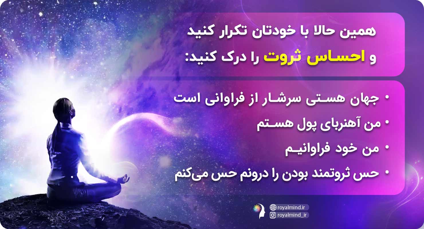 ۲. تصور کنید که این اتفاق افتاده و کاملا احساس کنید ثروتمندید