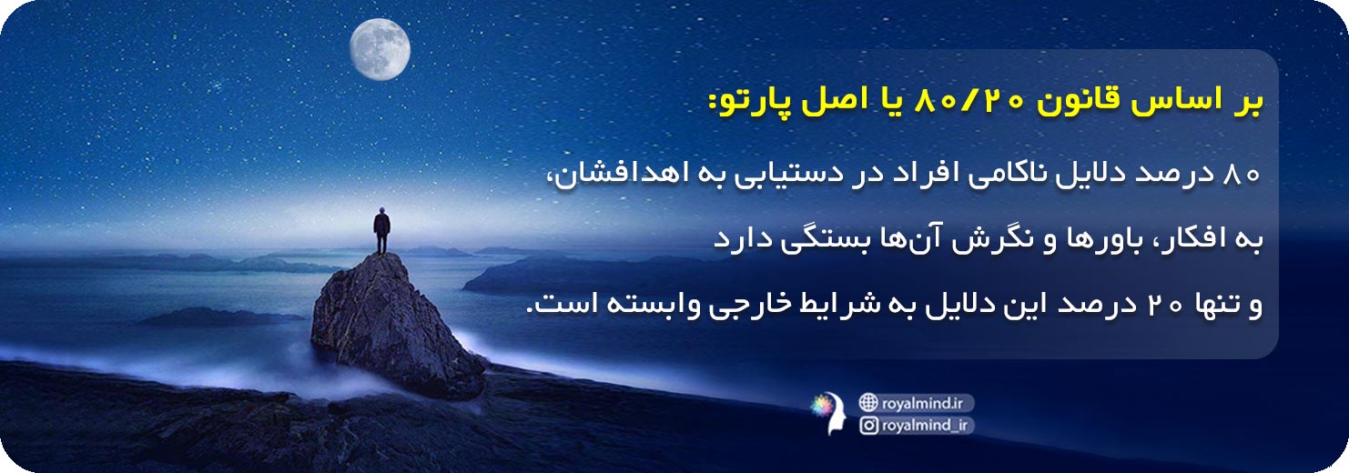 برایان تریسی بر این باور است که قانون ۲۰/۸۰ یا اصل پارتو، در مورد محدودیتها و نقاط ضعف یک کسبوکار صادق است. او اعتقاد دارد که ۸۰ درصد دلایل ناکامی افراد در دستیابی به اهدافشان، به افکار، باورها و نگرش آنها بستگی دارد و تنها ۲۰ درصد این دلایل به شرایط خارجی وابسته است. با این تفاصیل، برای رسیدن به موفقیت باید روی افکار و باورهای خود با جدیت کار کنیم و اجازه ندهیم که باورهای محدودکننده، خودشان را در قالب موانع و محدودیتهای خارجی به ما نشان دهند و سد راه موفقیتمان شوند.